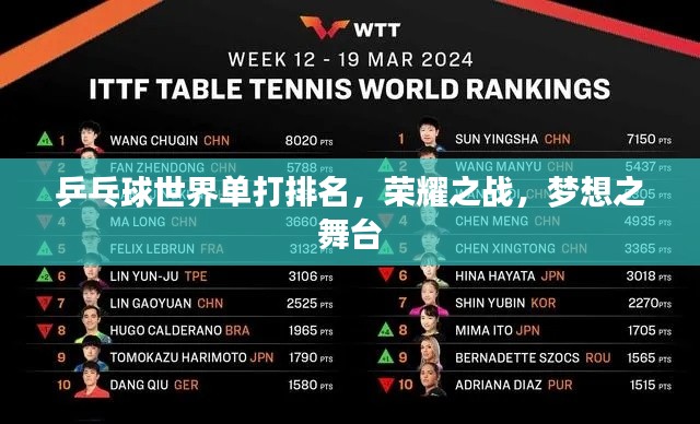 乒乓球世界单打排名,荣耀之战,梦想之舞台